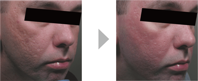 男性ですがこの広範囲のニキビ跡は非常に気になってしまうでしょう。それが施術後は改善。かなりきれいになりました。
