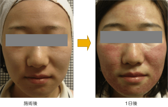 施術後は赤みや脹れがありますが、数日で消失し、施術後3日~10日の期間をかけて角質が剥けてきます。その際に強引に皮を剥かないよう、洗顔時には泡で優しく洗うようにして下さい。