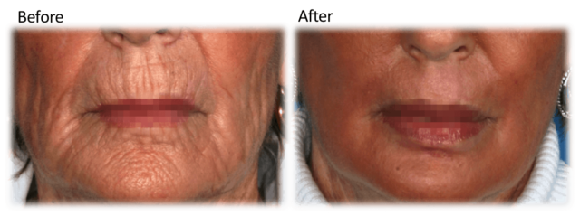 加齢にともないよく見かける口元のシワです。顎のたるみも合わせてここまで改善することができます。