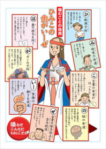 よく噛むと唾液がたくさん出て、この唾液の働きが、 細菌感染、虫歯や歯周病を防ぎます。